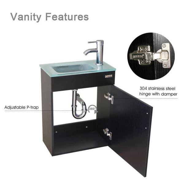 18.4 in. W x 10.5 in. D x 23.5 in. H Wall Hung Wall-Mounted Bath Vanity in Black with Clear Integrated Glasses Sink Top