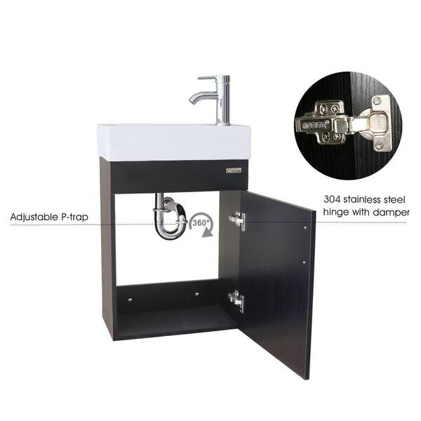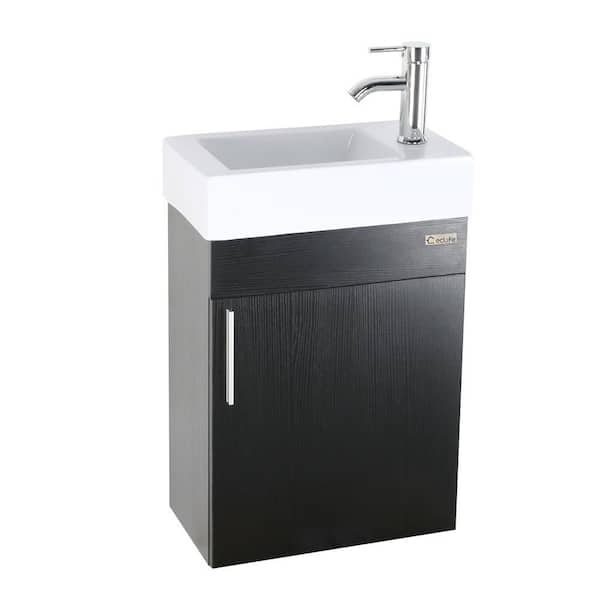 18.4 in. W x 10.5 in. D x 27 in. H Wall Hung Wall-Mounted Bath Vanity in Black with White Integrated Ceramic Top