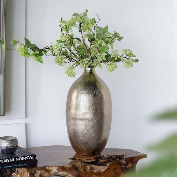 18.5 in. Gold Aluminum Streak Bottle-Shape Design Chic Decorative Vase for Home Decor Living Room Wedding Accessories