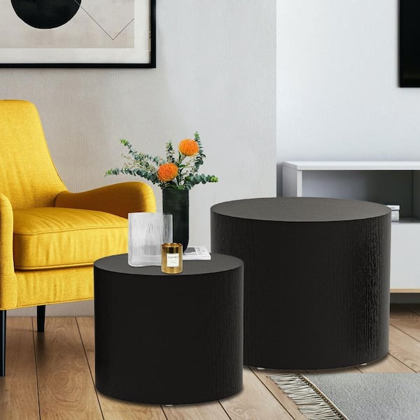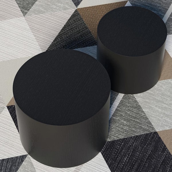 18.9 in. Matte Black Round MDF Side Table/Coffee Table/End Table/Nesting Table with Nested Functions 2-Pieces