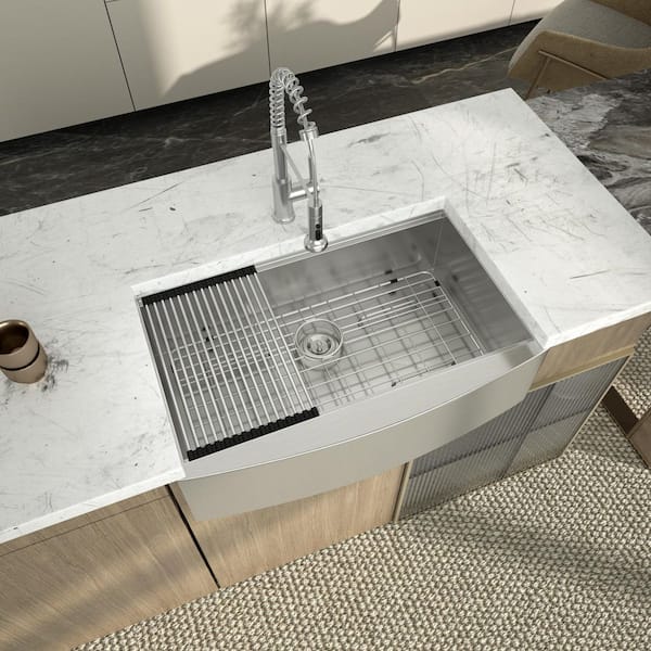 18 Gauge Stainless Steel 33 in.Single Bowl Farmhouse Apron Workstation Kitchen Sink With Strainer and Bottom Grid