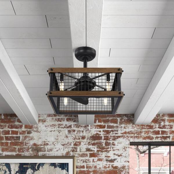 18 in. 4-Light Woodgrain and Black 3-Blade Indoor Cage Ceiling Fan with Light Kit and Remote Control Included