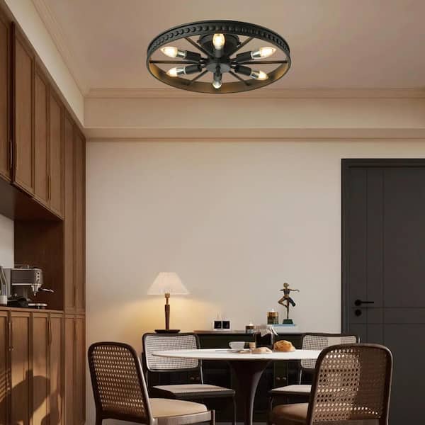 18 in. 6-Light Black Industrial Wagon Wheel Rustic Flush Mount Ceiling Light