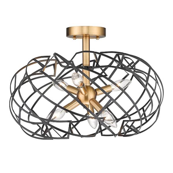 18 in. 6-Light Black and Gold Farmhouse Semi-Flush Mount with Shade and No Bulbs Included