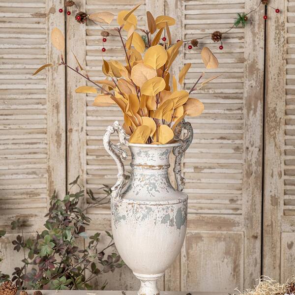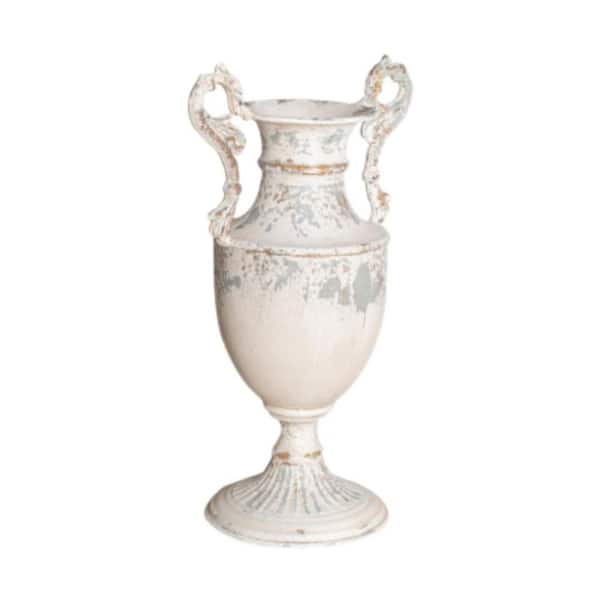 18 in. Gray White Metal Pitcher Decorative Vase Vintage Floral Ceramic Vase, for Displaying Fresh Flowers, for Any Room