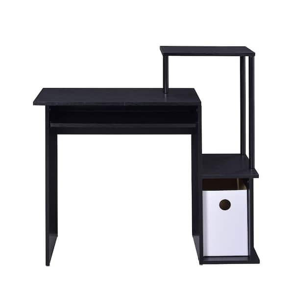 16.5 in. Antique Black Rectangle Wood End Table, Computer Desk with Keyboard Tray