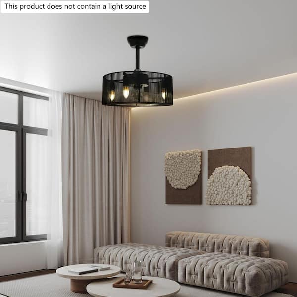 18 in. Indoor Black Industrial Semi-Closed 3-Blade Ceiling Fan with Light Kit and Remote