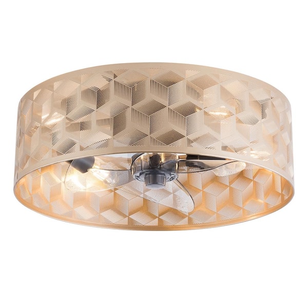 18 in. Indoor Gold Modern Low Profile Caged Ceiling Fan with Remote Control and Reversible Motor, No Bulbs Included