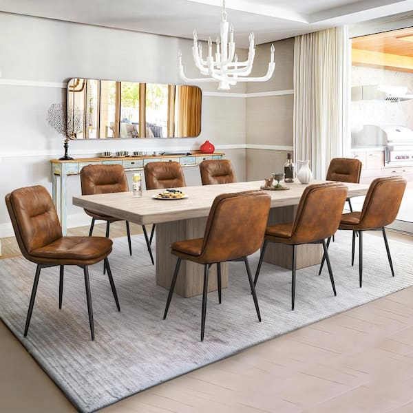 18 in. Metal Frame Brown Dining Room Chairs Faux Leather Upholstered Modern Dining Chairs Set of 4