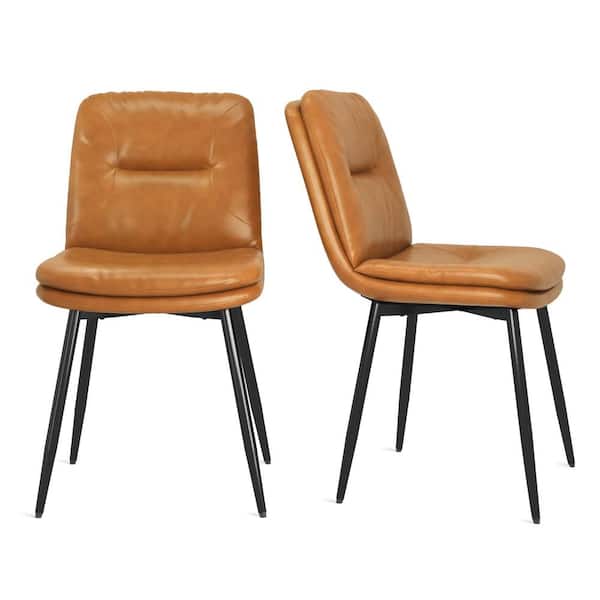 18 in. Metal Frame Whiskey Brown Faux Leather Upholstered Dining Chairs Set of 4
