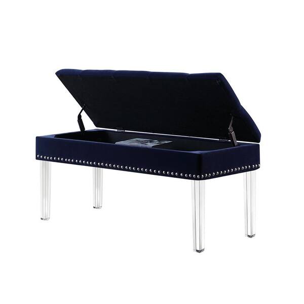 18 in. Navy Blue Tufted Mid-Century Storage Bench Nailhead Trim with Acrylic Clear Legs