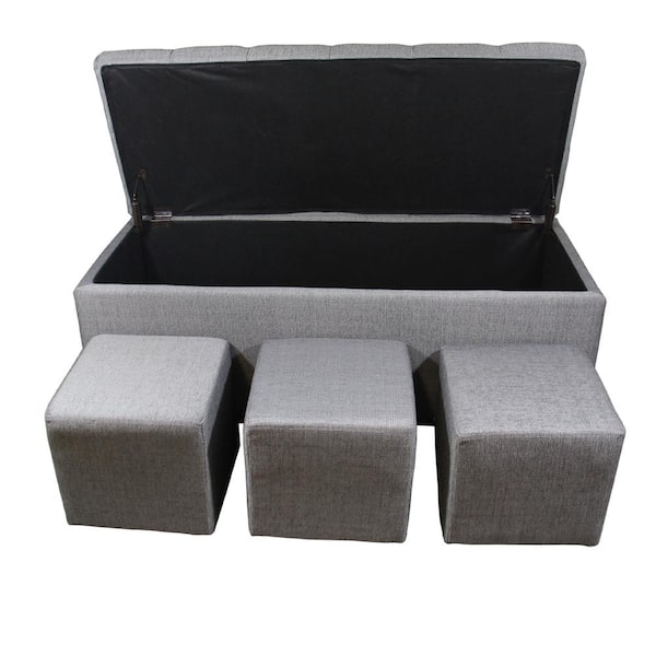 18 in. Tufted Grey Storage Bench and 3-Piece Ottoman Seating