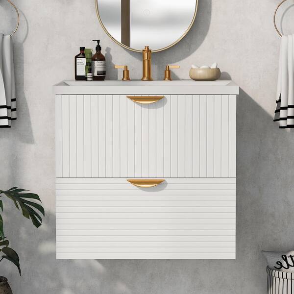 18 in. W x 24 in. D x 23 in. H Single Sink Floating Bath Vanity in White with White Resin Top and two-Drawers