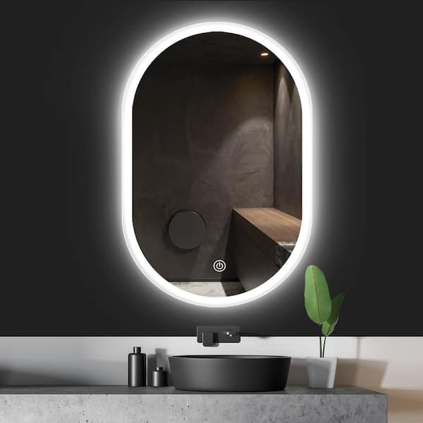 18 in. W x 26 in. H Large Glass Oval Frameless Vertical WallBathroom Vanity Mirror with Light, in Natural