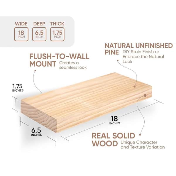 18 in. W x 6.5 in. D Diy-unfinished Floating Shelves Decorative Wall Shelf (Set of 2)