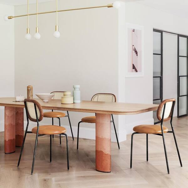 18 in. Whiskey Brown Metal Frame Rattan Counter Height Bar Stools With Faux Leather Seat (set of 4)