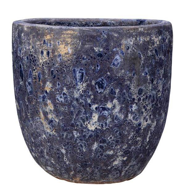 18 in x 18 in. Ceramic Egg Blue Lava Decorative Planter