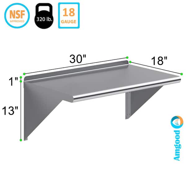 18 in. x 30 in. Stainless Steel Wall Shelf Kitchen, Restaurant, Garage, Laundry, Utility Room Metal Shelf with Brackets