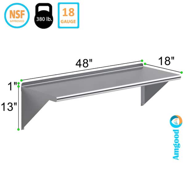 18 in. x 48 in. Stainless Steel Wall Shelf Kitchen, Restaurant, Garage, Laundry, Utility Room Metal Shelf with Brackets