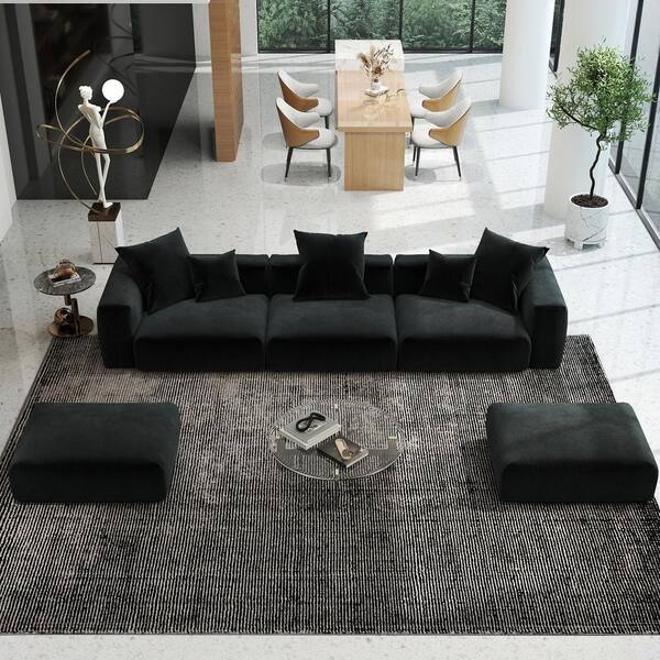 181.1 in. Square Arm Corduroy Deep-Seat Sofa Free Combination Various Shape Sectional Sofa in Black For Large Spaces DIY