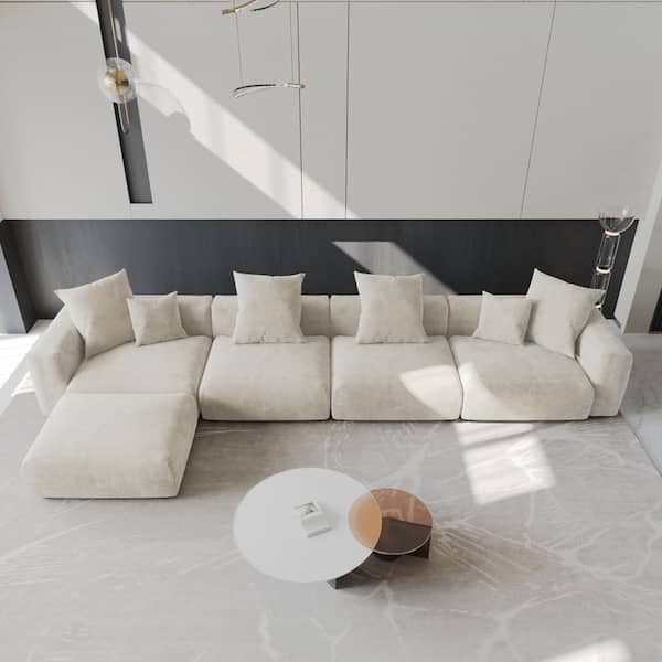 181 in. Square Arm Corduroy 5-Piece Modular Living Room Sectional Sofa with Deep Seat and Ottoman in Beige 6-Seater
