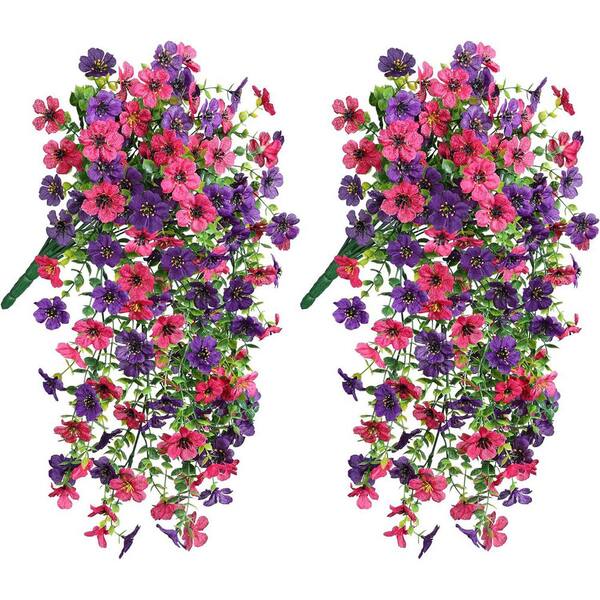 19.3 in. Dark Purple Pink Outdoor Artificial Daisy Flower 2-Pcs