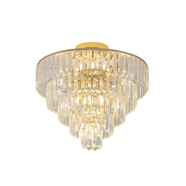 19.60 in. 10-Light Flush Mount with 5 Layers of Gold Crystal Shade and No Bulbs Included