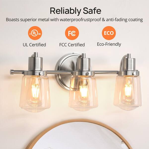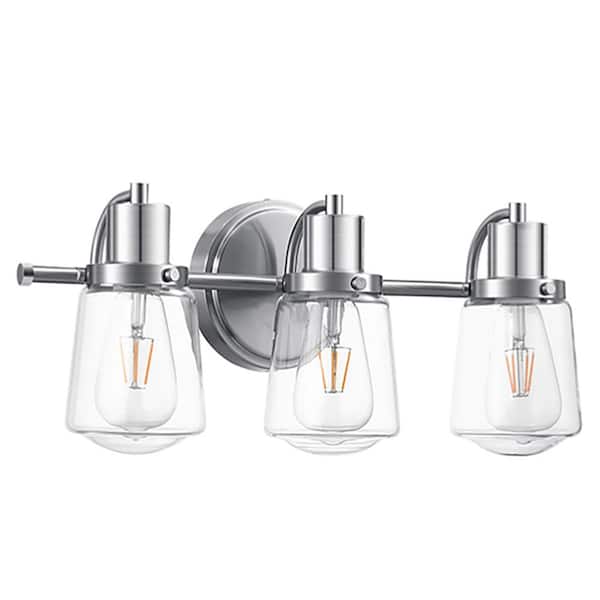 19.68 in. 3-Lights Silver Vanity Light Bathroom Light Fixtures with Clear Glass Lampshade (Bulb not Included)