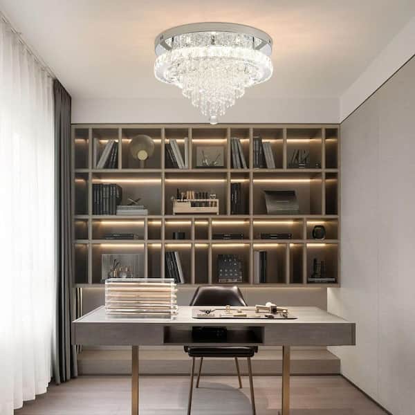 19.68 in. Chrome 2-Tier Luxury Crystal Flush Mount LED Ceiling Light, for Living Room Bedrooms Dining Room