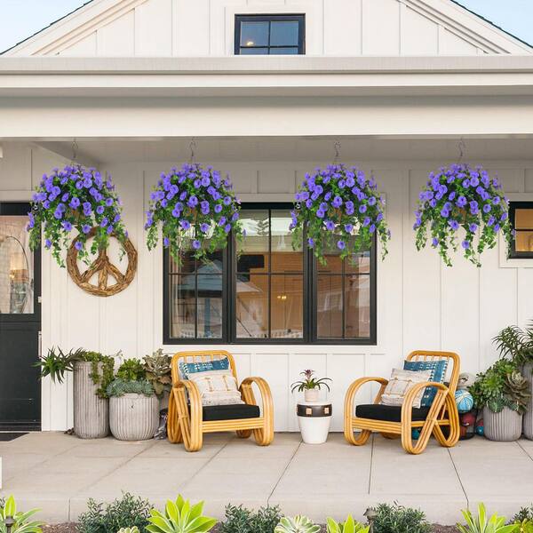 19.7 in Blue Artificial Flowers Hanging Basket, Fake Glory Flowers in Hanging Basket