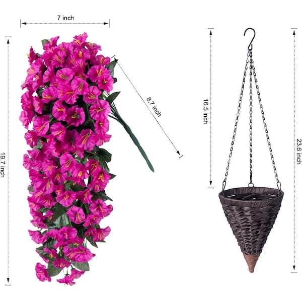 19.7 in. Fuchsia Outdoor Artificial Flowers Morning Glory in Brown Hanging Basket