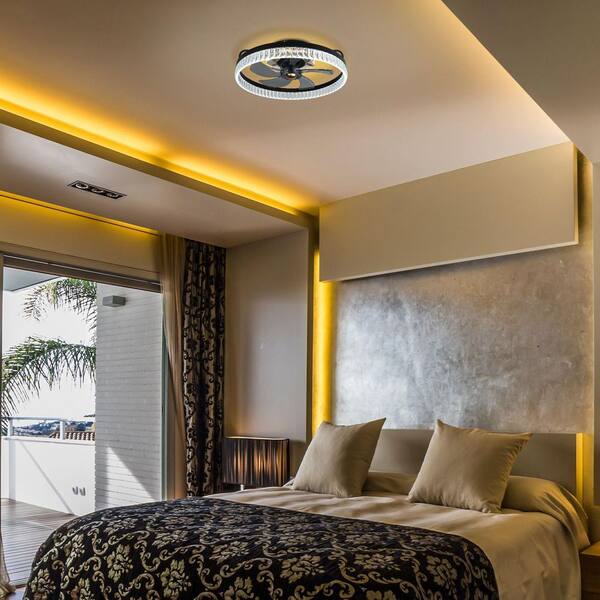 19.7 in. LED Indoor Black Plastic Crystal Ceiling Fan Light with Rotating Blades, APP and Remote Control