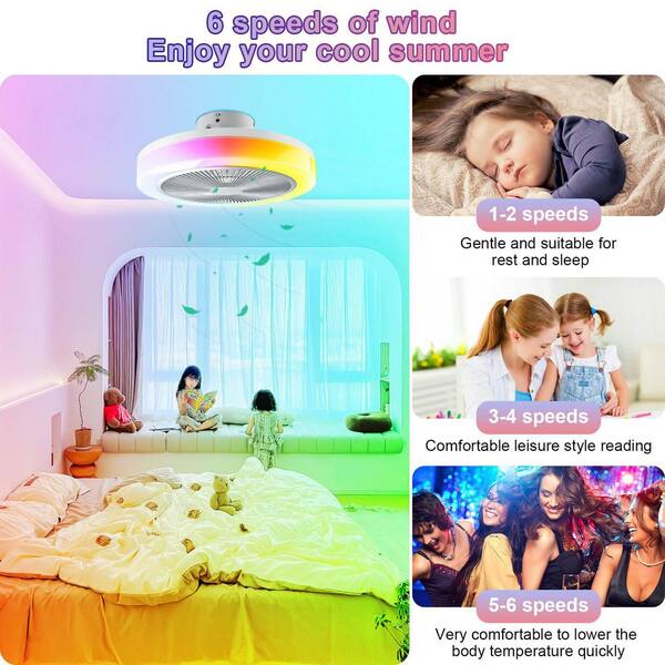 19.7 in. Low Profile Bladeless Ceiling Fan with RGB LED Light, Bluetooth, 6-Speeds, Flush Mount for Kids Room