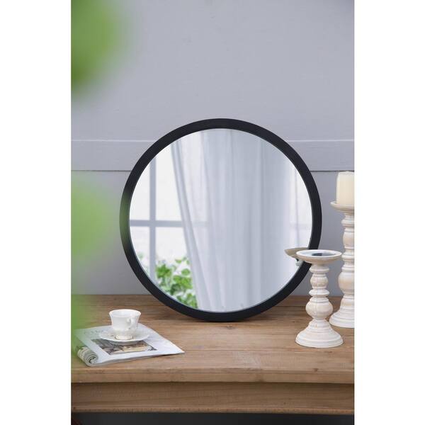 19.75 in. W x 19.75 in. H Round Wood Framed Wall Bathroom Vanity Mirror in Black