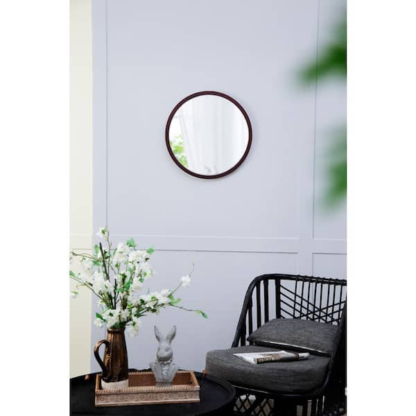 19.75 in. W x 19.75 in. H Small Round Wood Framed Wall Bathroom Vanity Mirror in Brown