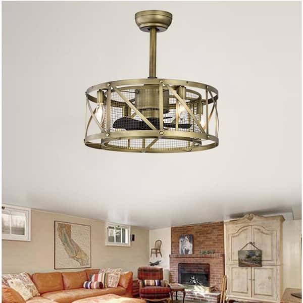 19.76 in. Rustic Gold Indoor Fandelier Ceiling Fan Light Flush Mount and 2 Dowrods