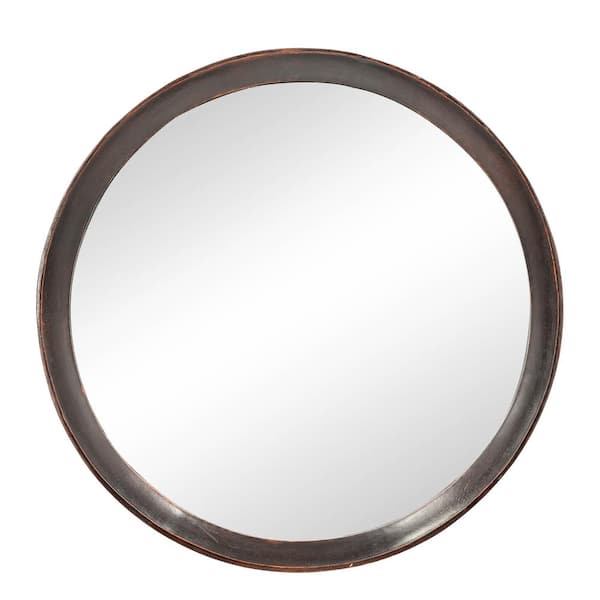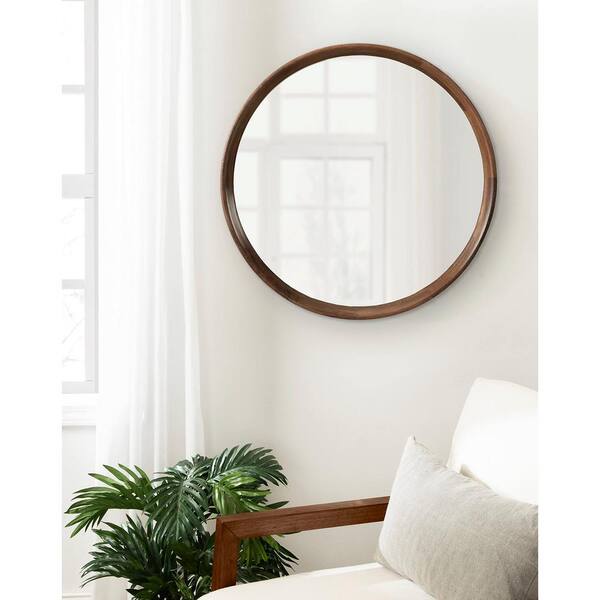19.80 in. W x 19.80 in. H Round Wood Framed Wall Bathroom Vanity Mirror in Dark Brown