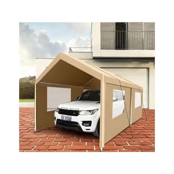 19.9 ft. W x 9.5 ft. D x 9.3 ft. H Beige Portable Carport, Portable Garage: with UV Protection and 4 Ventilated Windows