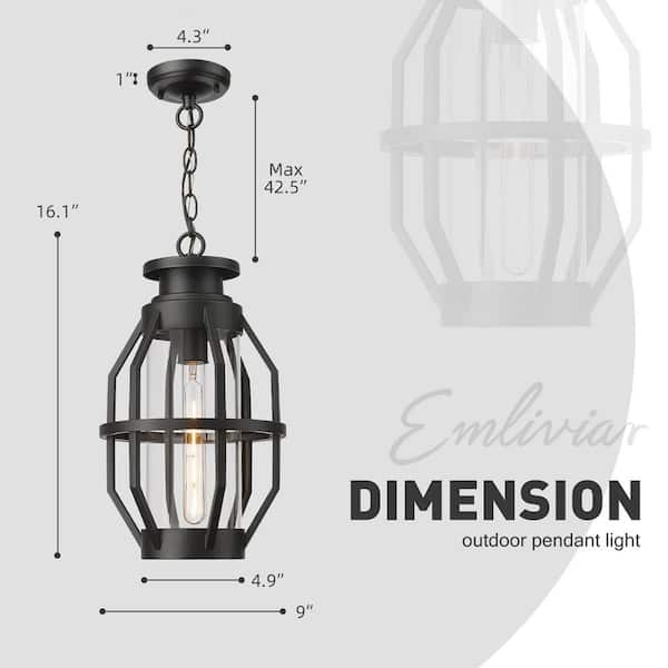 19 in. 1-light Aluminum Front Porch Outdoor Pendant Light with Clear Glass and No Bulbs Included