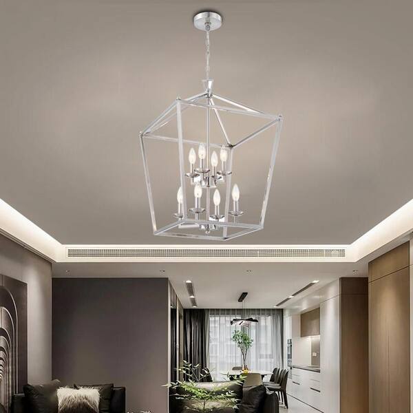 19 in. 8-Light Classic Silver Chandeliers Light with Adjustable Chain Height