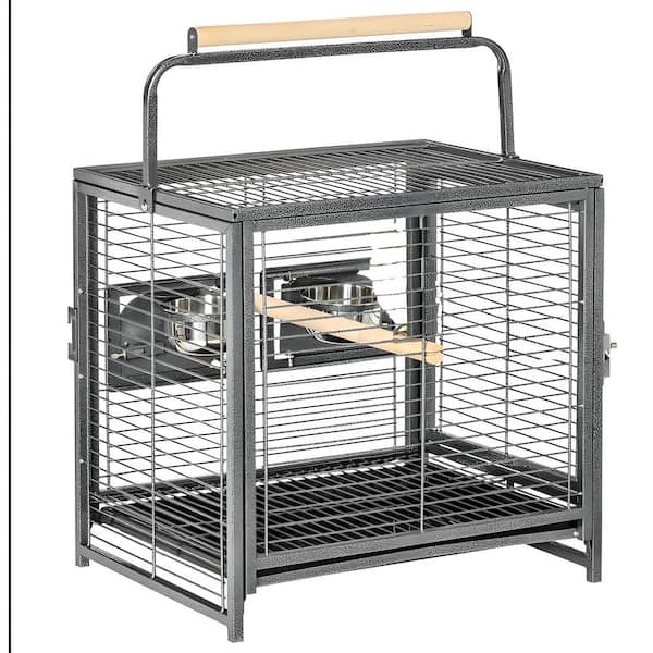 19 in. Black Steel Travel Bird House, Bird Cage-Ideal for Medium Parrots