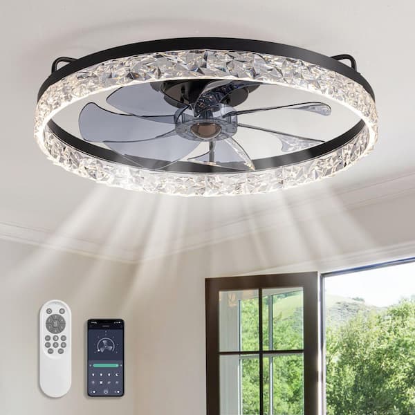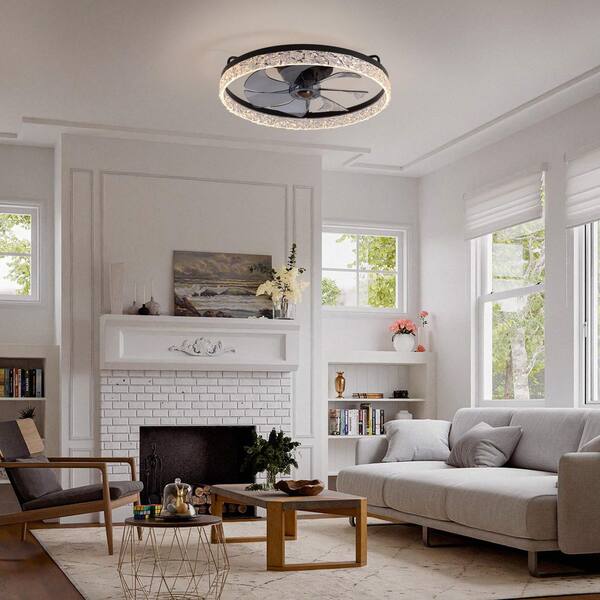 19 in. Indoor Black Low Profile Ceiling Fan with Integrated LED Light Modern Farmhouse Flush Mount Ceiling Fan