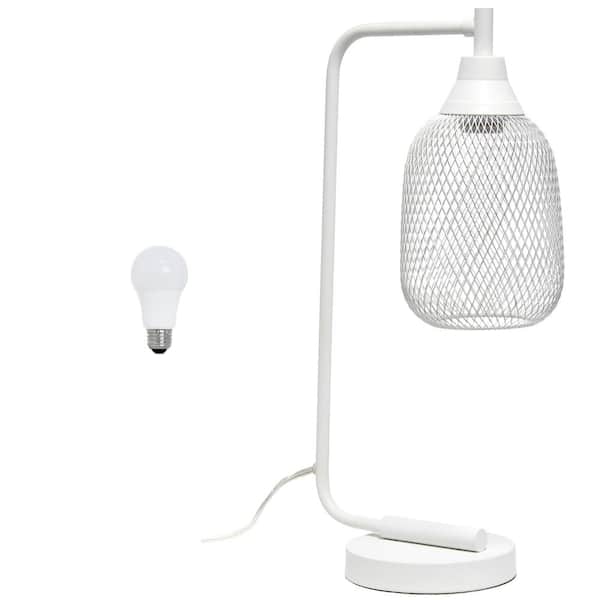 19 in. Industrial Mesh Wire Novelty Desk Lamp with LED Bulb for Living Room, Office, Bedroom, Matte White