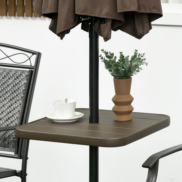 19 in. Out sunny Beach Umbrella Table Tray, Patio Umbrella Base, Slatted Instant Portable Beach Tables in Brown