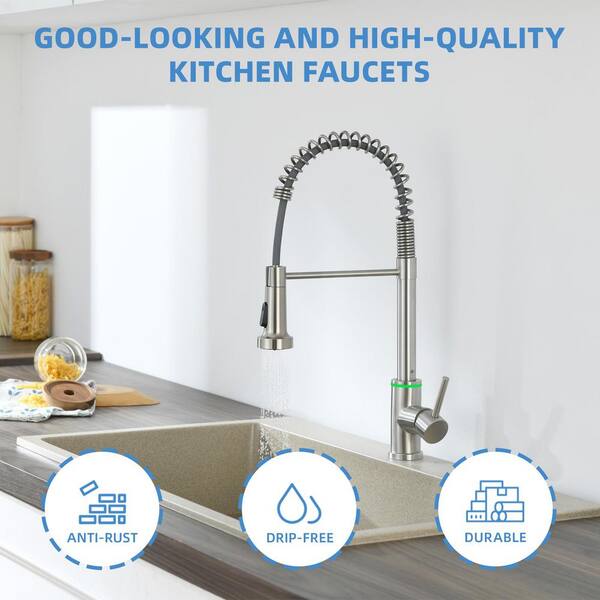 19 in.Single Handle Pull Down Sprayer Kitchen Faucet with 360° Spout Swivel in Brushed Nickel