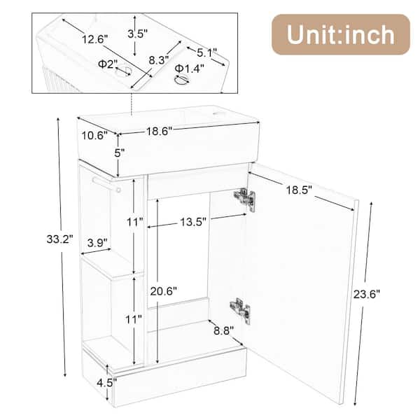 19 in. W x 11 in. D x 33 in. H Freestanding Bath Vanity in Gray with White Ceramic Top