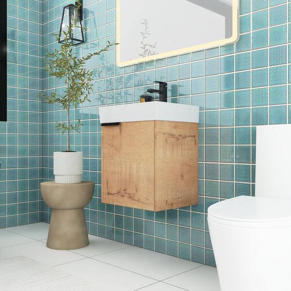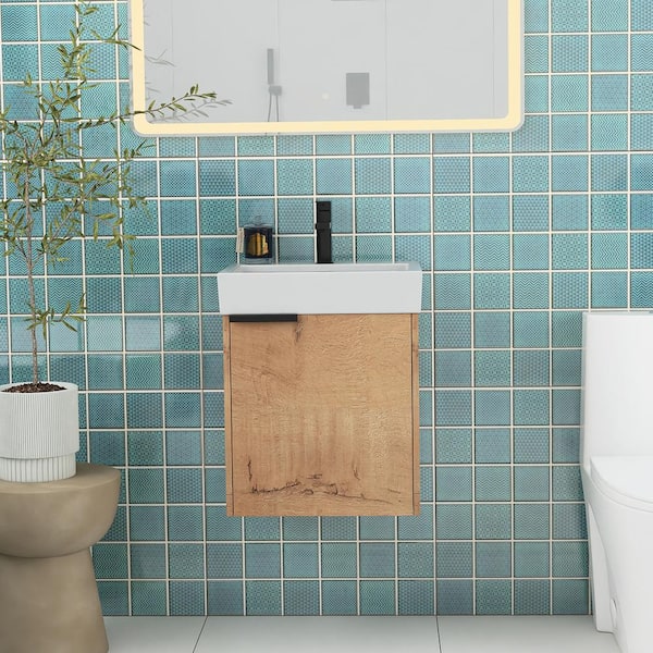 19 in. W x 15 in. D x 23 in. H Wall Mounted Single Sink Bath Vanity in Imitative Oak with White Top with White Basin