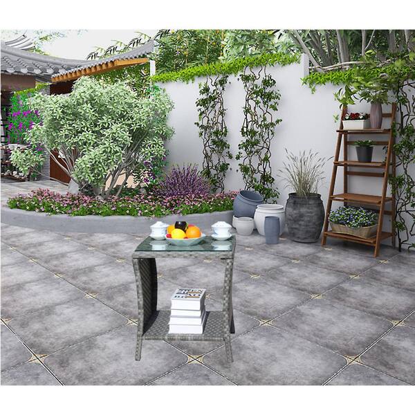 19 in. Wicker Outdoor Patio Furniture 1-Coffee Table with Clear Tempered Glass