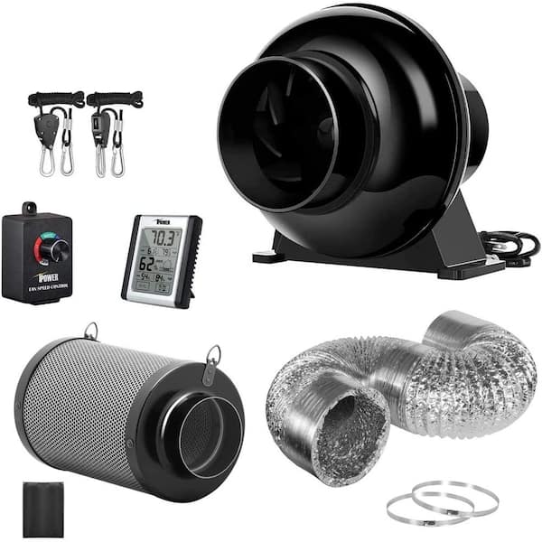 195 CFM Inline Fan with Upgrade Air Carbon Filter, Ducting, Speed Controller, Rope Hanger, Temperature Humidity Monitor