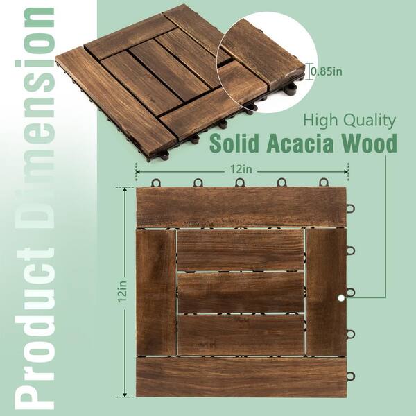 1ft.x 1ft. Interlocking Solid Hardwood Acacia Wood Deck Tile(30-Pack)